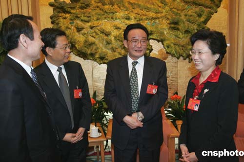 黃菊今天來到廣西代表團,同代表們一起參加了審議。