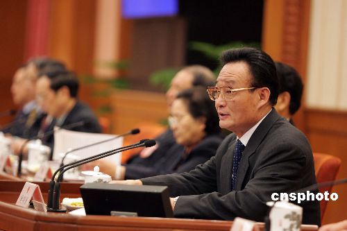 圖:吳邦國與人大青海代表一起審議工作報告