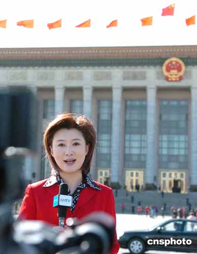 圖:美女主持人報(bào)道全國政協(xié)閉幕大會(huì)