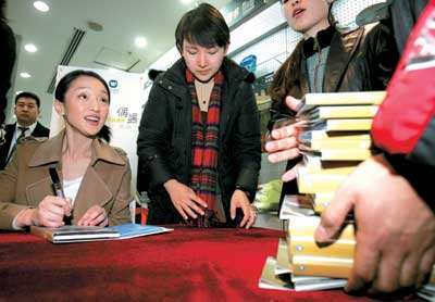 中新網(wǎng)3月14日電 據(jù)北京娛樂信報(bào)報(bào)道,昨天(13日)下午,周迅在北京國美電器首體店舉行2005新專輯《偶遇》的首簽會(huì)。原定首簽會(huì)從14點(diǎn)開始,但是從上午9點(diǎn)多就有歌迷來守候了,而到實(shí)際簽售的時(shí)候,歌迷隊(duì)伍排出了幾百米。(記者 郝曉楠)