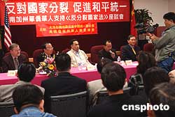 美國洛杉磯華人政治評論家與當?shù)貎S胞僑領(lǐng),三月十九日云集中國城參加座談會,異口同聲支持中國通過實施《反分裂國家法》。作者:賈國榮