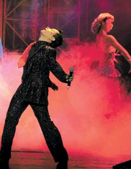 《胭脂扣》有一場戲,是醇酒美人。花客們都舉杯與那紅牌阿姑一干,鏡頭對準了女主角,她惟有干了。雖然是茶,但每回仰首而盡,五六回之后,也真難受。而一桌的演員呢,有喝了的,有喝一兩口的,也有沾沾唇而已。不知在第幾回了,我留意到男主角(張國榮)總是把那道具酒也干了,然后意亂情迷。當導演一喊“CUT”,他便把口中的酒,回吐于酒杯中。下一回,又換一杯,重新意亂情迷。其實每當拍到飲食場面的戲時,除了新丁,誰都不會來真的。這番卻特別的感覺到了,主要因為他的“姿態(tài)”,他若無其事,不動聲色,乘人不覺。一秒鐘之前,他還要以為這真是世上最好的酒、最好的人。戲還是戲,未了便悄悄地抽身退出,戲只是戲。虛幻的,像假的醇酒,惟在道具中打轉(zhuǎn),不可能留于胃內(nèi)反芻。