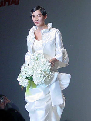 中新網3月24日電 據(jù)新聞晚報報道,昨天(23日)下午,在世貿商城的韓國時裝紡織博覽會上,韓國明星金素妍、鄭俊鎬身穿韓國頂級時裝大師AndreKim(安德烈·金)設計的最新服裝舉行了一場別開生面的婚紗秀,贏得了中國影迷的熱烈歡呼。下午三點,婚紗秀現(xiàn)場正式開放,爭相涌進的觀眾讓表演現(xiàn)場一時陷入癱瘓。主辦方不得不現(xiàn)場趕人,沒有邀請函的觀眾一律“清理”。當金素妍和鄭俊鎬雙雙出現(xiàn)在舞臺上時,歡呼聲伴隨著閃光燈爆發(fā)出來,出現(xiàn)了仿佛是搖滾樂演唱會的情景。特別是當鄭俊鎬輕吻金素妍前額時,一些女影迷當場流出了熱淚。