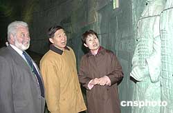 日本愛知世博會二十五日正式開展當天上午,國際展覽局主席吳建民(中)、秘書長洛塞泰斯(左)在本次世博會中國政府代表高燕(右)的陪同下參觀中國館。作者:王健