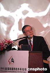 二00五北京國(guó)際鼻顱底外科論壇三月二十六日在北京開幕,香港大學(xué)醫(yī)學(xué)院教授、耳鼻咽喉外科專家韋林為與會(huì)者做專題演講。作者:任晨鳴