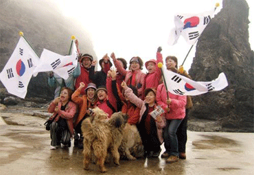 據(jù)報(bào)道,該游輪定員為215人,這次有希望游覽“獨(dú)島”的游客和媒體記者等60多人搭乘了這艘船。韓國(guó)游客一踏上“獨(dú)島”就口喊“我們的領(lǐng)土獨(dú)島”。