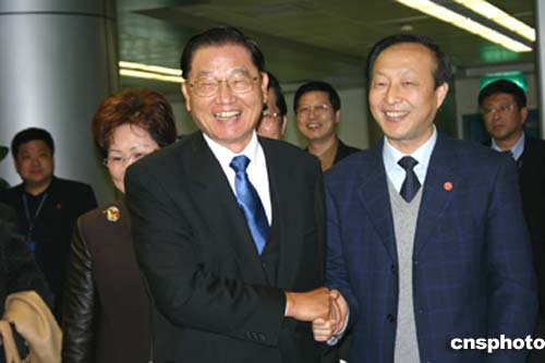 國民黨副主席江丙坤一行乘坐的CZ三五○七航班今天下午十六點二十八分抵達南京祿口國際機場,受到江蘇有關方面及在蘇臺商的熱烈歡迎。這是該參訪團赴大陸“緬懷之旅、經(jīng)貿(mào)之旅”的第二站。江丙坤一行抵達南京祿口國際機場,江蘇省臺辦主任陳堯等在機場歡迎。作者:陳旻