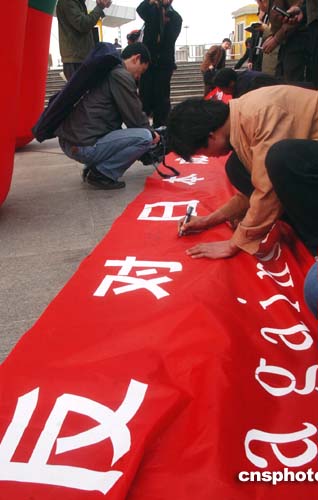 三月三十一日,中國(guó)民間保釣聯(lián)合會(huì)、愛(ài)國(guó)者同盟網(wǎng)、反日貨聯(lián)盟網(wǎng)及中國(guó)民間愛(ài)國(guó)人士在北京朝陽(yáng)公園發(fā)起的“反對(duì)日本成為聯(lián)合國(guó)常任理事國(guó)”萬(wàn)米民意卷簽名活動(dòng)吸引了眾多市民參加,簽名條幅將由有關(guān)人士送交聯(lián)合國(guó)總部。作者:韓藝冰