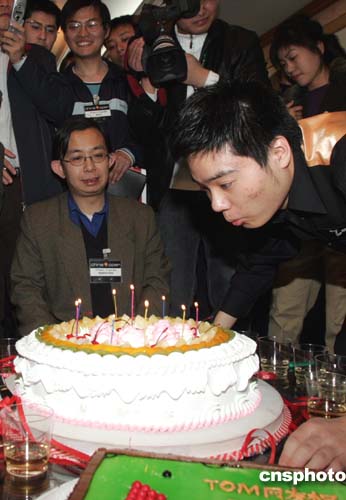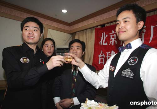 丁俊暉在賽后的生日PARTY上 傅家。ㄓ遥┫蚨】熥>