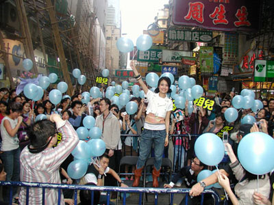 簽名會(huì)期間,突然有一位男歌迷向她求婚,令祖兒有點(diǎn)尷尬,不知所措。這位叫“阿榮”的歌迷,當(dāng)眾跪下向她求婚,與他同來的一位友人,就替他拿著一張寫滿了對(duì)Joey愛的情信,這位歌迷更是有備而來,準(zhǔn)備了戒指作為求婚之用。主持人問到Joey是否第一次收到求婚戒指,她笑言:“都不知道收到多少啦!哈哈!笔潞髥柕剿袥]有被他的舉動(dòng)嚇驚?她坦言有點(diǎn)驚,但因她的歌迷過去都有不同方式向她示愛,千奇百怪,而且很猖狂,早就慣了面對(duì)。記得曾有歌迷送了一個(gè)金牌給她,上面寫著“對(duì)你的愛永不完”,亦有位歌迷寄了一張請(qǐng)?zhí)o她,上面的名字竟然是Joey和那位男方的名字。