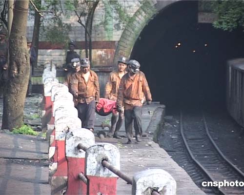 四月五日下午二時十五分,位于重慶市合川境內(nèi)的天府礦業(yè)公司三匯一礦發(fā)生煤與瓦斯突出特大事故,目前有一人遇難,二十二人生死不明。圖為遇難礦工尸體被抬出井口。作者:郭晉嘉