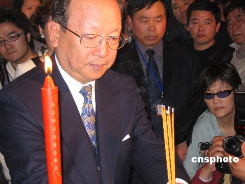 蔣孝嚴(yán)肅然而立,接著,上香,跪拜,臉龐上輕快的笑容隨著祭拜儀式的開始而慢慢凝重。他的身邊,是夫人蔣黃美倫。