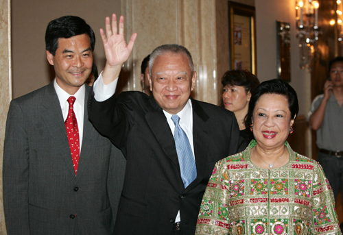 董建華伉儷于昨天晚上七時(shí)半抵達(dá)港島香格里拉酒店夏宮,他向在場(chǎng)的記者善意揮手,但沒(méi)有回應(yīng)提問(wèn)。辭官近一個(gè)月的董建華,身形略為清減,臉色紅潤(rùn),看來(lái)身體狀況勝于從前。