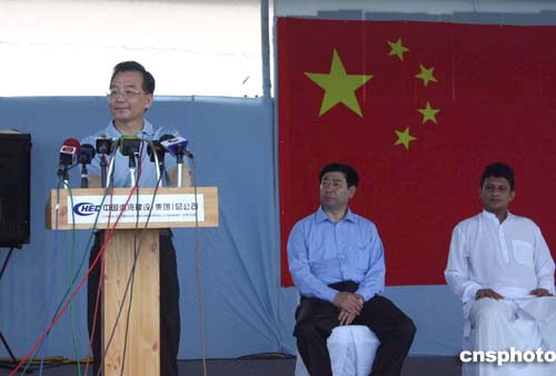 圖:溫家寶出席斯里蘭卡受損漁港重建儀式
