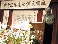 前紐約民權(quán)委員會副主席王碚介紹了祖炳民的生平:祖籍山東蓬萊,1924年生于吉林省。46年畢業(yè)于日本東京法學(xué)院。49年在美國華府喬治城大學(xué)獲外交政治碩士學(xué)位。54年獲紐約福旦大學(xué)政治學(xué)博士學(xué)位,同時擔(dān)任于斌主教特別助理。60年任新州西東大學(xué)遠(yuǎn)東學(xué)院院長,同時協(xié)助創(chuàng)設(shè)全美中文教師學(xué)會,推動美國的中文教育,遍及大、中、小學(xué)。