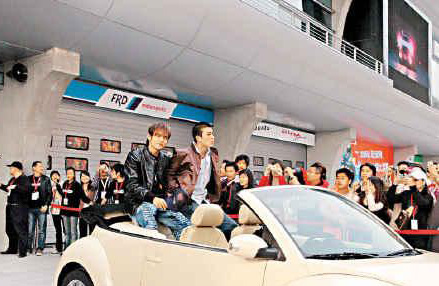 據(jù)香港媒體報(bào)道,眾演員中午時(shí)分抵達(dá)上海,首先舉行記者會(huì),之后到上海F1賽車場(chǎng)欣賞賽車及飄移表演,眾演員欣賞過(guò)四位國(guó)際級(jí)賽車飄移高手表演,之后大會(huì)安排周杰倫、陳冠希、鈴木杏坐開(kāi)篷車出場(chǎng),車迷更加瘋狂,蜂擁上前希望一睹偶像風(fēng)采,場(chǎng)面熱鬧。