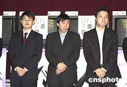 | 第十八屆富士通杯世界圍棋錦標(biāo)賽四月十一日在日本棋院戰(zhàn)罷第二輪。三名中國(guó)棋手全線告捷,戰(zhàn)勝各自對(duì)手進(jìn)入八強(qiáng)。其中古力七段(圖右)中盤戰(zhàn)勝韓國(guó)棋手李昌鎬九段;俞斌九段(圖中)以三目半戰(zhàn)勝中國(guó)臺(tái)北周俊勛九段;王檄五段(圖左)中盤勝日本羽根直樹(shù)九段。圖為三名獲勝的中國(guó)棋手賽后與現(xiàn)場(chǎng)觀眾見(jiàn)面,并進(jìn)行下一輪對(duì)陣位置的抽選。作者:王健