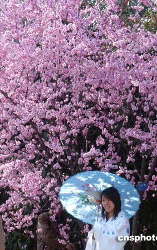 四月十二日,一位身著日本和服的女孩在北京盛開的櫻花樹下留影。正在北京玉淵潭公園舉行的櫻花節(jié),盛開的櫻花迎春怒放,吸引眾多賞花游人。作者:韓藝冰