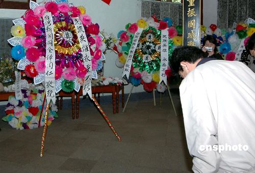 為抗日壯士的愛國精神所感,臺灣記者自發(fā)向英魂們敬獻花圈。兩位代表神情肅穆,恭持花圈,沿著綠樹掩映的甬道登上忠烈祠。祠內懸掛孫中山先生畫像,墻壁上鐫刻著九千余位烈士的英名,氣氛莊嚴凝重。臺灣記者將寫有“民族英雄永垂不朽”挽聯(lián)的花圈置于擺滿鮮花的案前,然后鞠躬致敬,并在祠內合影留念。