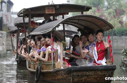 國(guó)際旅游小姐中國(guó)佳麗亮相西塘