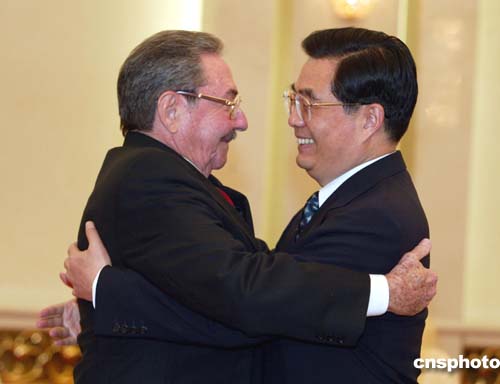 中共中央總書記、國(guó)家主席胡錦濤四月十八日在北京人民大會(huì)堂會(huì)見了古共中央第二書記、國(guó)務(wù)委員會(huì)第一副主席兼部長(zhǎng)會(huì)議第一副主席勞爾·卡斯特羅。作者:滿會(huì)喬