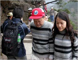 據(jù)悉,4月16日是黃山天都峰結束5年封山后,第一天向游客開放。很多游客當天見到楊振寧夫婦身著情侶裝,手牽著手漫步走過排云亭。楊老先生的精神狀態(tài)很好,不時的指著遠處的山峰景色給愛妻介紹。 (吳永泉)