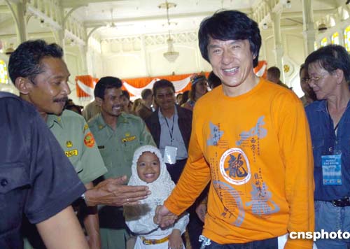 國際巨星成龍及曾志偉等一行,近日在印度尼西亞阿齊省災(zāi)區(qū)和棉蘭市探訪當(dāng)?shù)貫?zāi)民,成龍所到之處歡呼聲不斷。作者:洪少葵