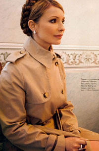 從雜志社提前披露的一些插圖來(lái)看,拍攝地點(diǎn)應(yīng)是季莫申科總理在政府大樓內(nèi)的休息室,家具比較大氣,也顯得有些笨重,具有典型的蘇聯(lián)官員風(fēng)格,顯然,已有不止一屆的政府總理使用過(guò)。季莫申科不僅穿著西裝,還戴有披風(fēng)。