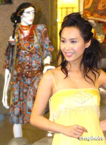 香港女星朱茵20日出席在香港時(shí)代廣場(chǎng)舉行的05春夏潮流展覽﹐展示窈窕身材。作者:趙振清