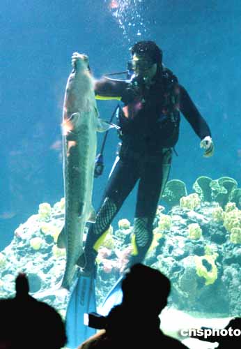 四月二十二日,二十六尾中華鱘魚首次在北京海洋館與游人見面,其中一尾中華鱘全長三點二米,雌性,是目前人類發(fā)現(xiàn)的最大野生中華鱘中之一,另外二十五尾來自中國水產(chǎn)科學研究院長江水產(chǎn)研究所。作者:張宇