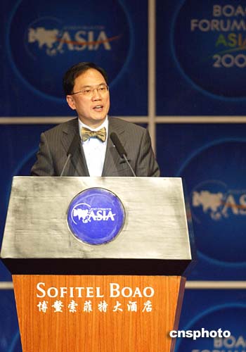 四月二十三日,博鰲亞洲論壇二○○五年年會(huì)在海南博鰲開幕,香港特別行政區(qū)署理行政長(zhǎng)官曾蔭權(quán)發(fā)表主旨演講。作者:廖文靜