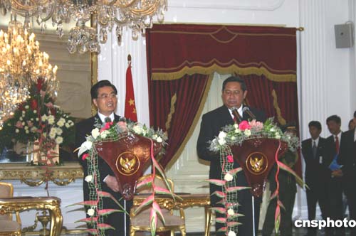 圖:胡錦濤與印尼總統(tǒng)蘇希洛舉行會(huì)談