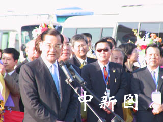 連戰(zhàn)一行乘機(jī)于今天下午四點(diǎn)四十分抵達(dá)南京祿口機(jī)場(chǎng),受到熱烈歡迎。隨后連戰(zhàn)在機(jī)場(chǎng)停機(jī)坪三十米的紅地毯中央向中外記者發(fā)表了講話。