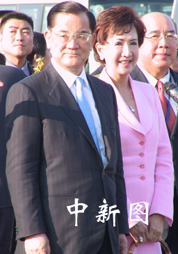 連戰(zhàn)夫人方瑀一下飛機(jī),就在麥克風(fēng)面前輕聲感嘆:晴空萬里。欣喜之情溢于言表。