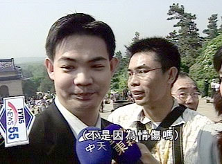 第三次來到南京中山陵,連戰(zhàn)的大公子連勝文,一路走來輕松,但被問到是不是為情消瘦,連勝文把國父都搬出來當作擋箭牌,表示今天來的地方很神圣,不適宜問這種八卦話題。倒是第一次來到南京的弟弟連勝武趕快出面幫哥哥解圍,表示是因為工作繁重才消瘦。