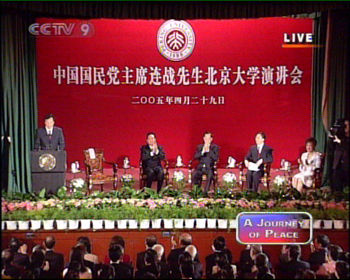 中新網(wǎng)4月29日電 中國國民黨主席連戰(zhàn)即將開始在北京大學(xué)的演講,演講主題是“堅(jiān)持和平走向雙贏”。本網(wǎng)將在第一時(shí)間進(jìn)行報(bào)道,敬請(qǐng)關(guān)注。