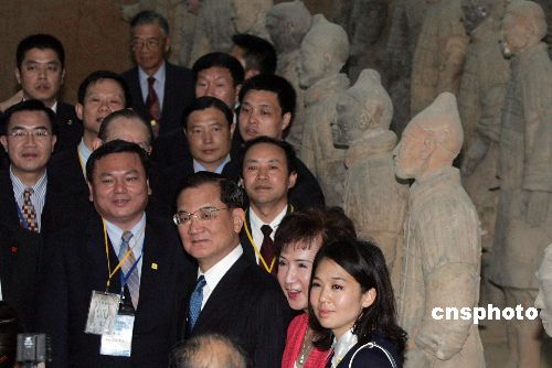 在闊別六十一年后,中國國民黨主席連戰(zhàn)在他的出生地古城西安,參觀了被譽為“世界第八大奇跡”的秦始皇兵馬俑博物館,與秦兵馬俑進行了零距離的親密接觸。