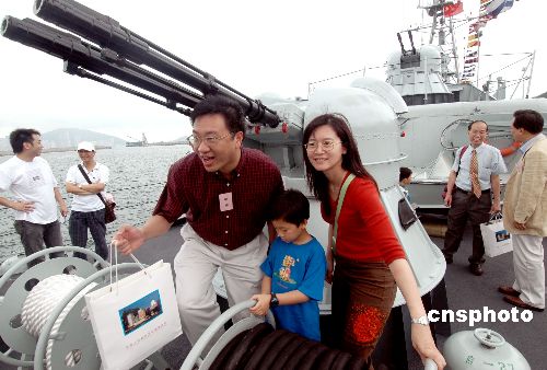 上午十時(shí),部分香港青少年團(tuán)體及學(xué)校師生約四千多人來到昂船洲海軍基地,饒有興趣地參觀艦艇,觀摩水兵文化生活,并進(jìn)行聯(lián)歡。