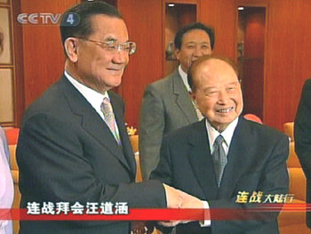 中新網(wǎng)5月2日電 中國國民黨主席連戰(zhàn)今日(2日)上午11時左右,在上海錦江飯店小禮堂與海協(xié)會會長汪道涵會面。