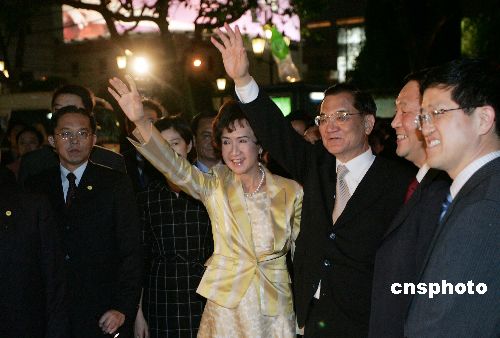 中新社上海五月二日電(記者許曉青 劉舒凌)二日晚九時,此間時尚所在——上海新天地,正在此間訪問的中國國民黨主席連戰(zhàn)夫婦與親友前來游覽,未料太多媒體記者與上海市民聞風前來,他們在與市民短暫揮手致意后離開。