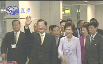 連戰(zhàn)在機(jī)場發(fā)表了簡短的講話。他說,這次應(yīng)邀率領(lǐng)中國國民黨訪問團(tuán)前往大陸。前后八天,分別訪問了南京、北京、西安和上海。在南京,訪問團(tuán)前往“國父”孫中山先生陵寢進(jìn)行了致祭。到了北京,有機(jī)會(huì)會(huì)見大陸的領(lǐng)導(dǎo)人,就兩岸以及當(dāng)前的相關(guān)問題交換了意見。過程和一些看法已經(jīng)透過新聞發(fā)布,各位也都已經(jīng)了解。