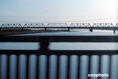 中新網(wǎng)5月1日電 二零零五年五月一日,穿越可可西里聯(lián)想鋒行探險(xiǎn)隊(duì)車隊(duì)行進(jìn)在內(nèi)蒙古京呼高速公路上的黃河大橋。