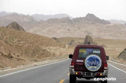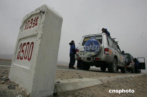 中新網(wǎng)5月3日電 二零零五年五月三日,穿越可可西里聯(lián)想鋒行探險隊車隊抵達北京——拉薩的109國道2500公里處。