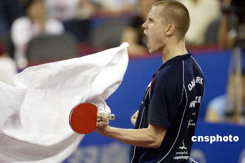 中新社上海五月五日電 (記者 王歡)繼昨天爆冷戰(zhàn)勝了奧運(yùn)會男單亞軍、中國選手王皓之后,已經(jīng)打瘋了的丹麥人梅茲一發(fā)不可收拾,在今天與中國小將郝帥的世乒賽男子單打四分之一決賽中,零比三落后的他以打不死的韌勁和退臺放高球的打法,連扳四局反敗為勝。