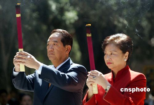 中新網(wǎng)5月6日電 親民黨主席宋楚瑜、陳萬(wàn)水夫婦今日(6日)上午,攜親民黨大陸訪問(wèn)團(tuán)一行在黃帝陵冢前上香祭拜。