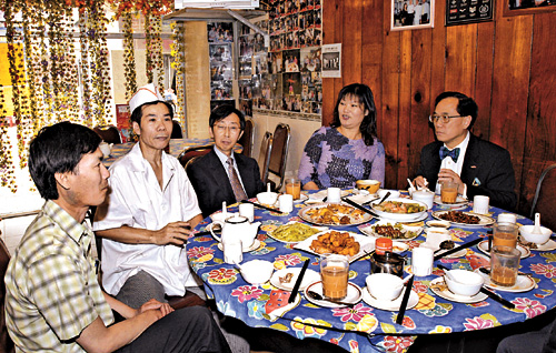 曾蔭權與學員交談后,隨即前往粉嶺聯(lián)和墟的一所咖啡室,與正在享受下午茶的市民閑談。曾蔭權說:“我十分享受在這種輕松的氣氛下與‘街坊’閑話家常,對我掌握民生和民情好有幫助。他們的意見對我和特區(qū)政府的同事們施政甚具啟發(fā)性及有用!