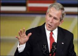 “我們不會重復(fù)前輩的錯誤,這些錯誤包括迎合或容忍暴政,或者以徒勞的穩(wěn)定來犧牲自由,”布什說。