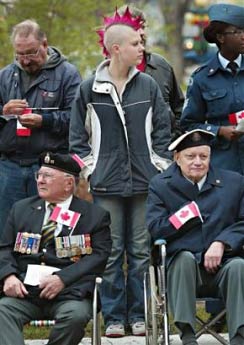 中新網(wǎng)5月9日電 據(jù)美聯(lián)社報(bào)道:加拿大舉行慶;顒(dòng)以紀(jì)念盟軍擊敗納粹德國(guó)60周年。圖為三名加拿大老兵5月8日在溫尼伯湖參加勝利紀(jì)念活動(dòng)。(固山)