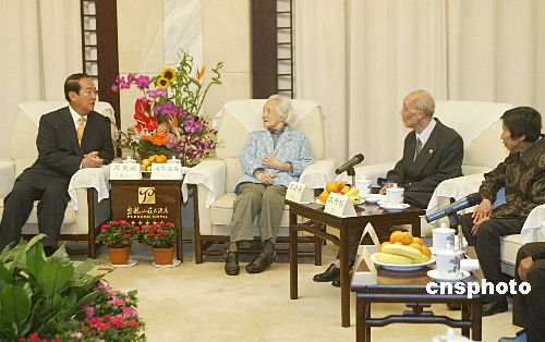 返鄉(xiāng)祭祖的宋楚瑜及家人9日中午在湘潭盤龍山莊與大陸親屬會面。分隔56年的親人一朝相見,不少人都當(dāng)場流下了熱淚。