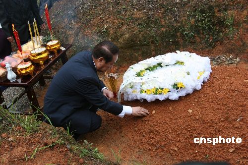 祭拜禮成后,宋楚瑜跪拜在曾祖父墓前,掬起一捧黃土。他要將自己滿腔的情感化作這深情的一捧,讓濕潤(rùn)的黃土同他此刻濕潤(rùn)的心一起裝進(jìn)杯子,帶回臺(tái)灣永久收藏。